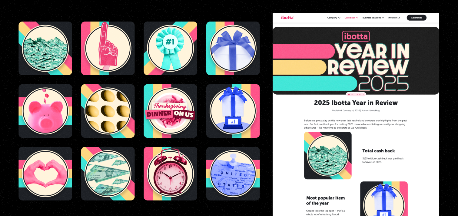 Every year, Ibotta celebrates its accomplishments and the accomplishments of its users by launching a marketing event called Year In Review that hits every digital touchpoint.